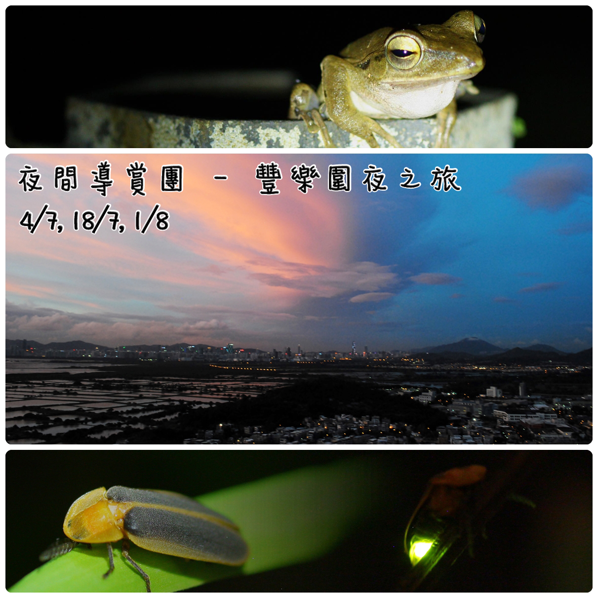 「香港漁塘生態保育計劃」將於2015年7及8月,舉辦3次夜間導賞團,帶領參加者夜間探索豐樂圍漁塘,讓市民認識漁塘夜間的生態。
