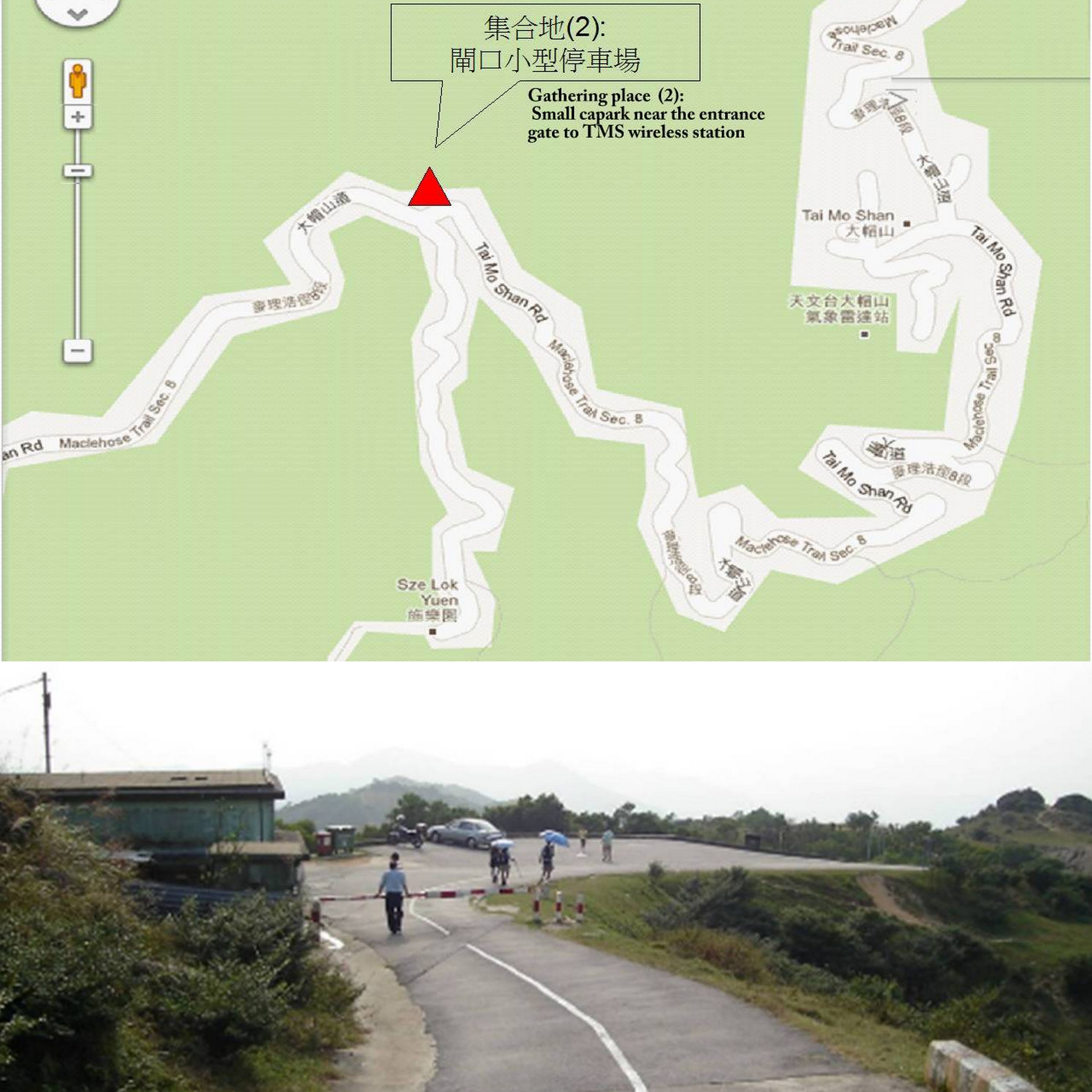- 大帽山道進入雷達站的閘口前的小型停車場