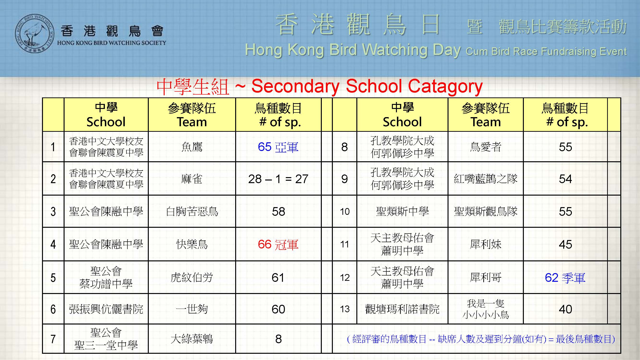 » 中學生組觀鳥大賽 @ 香港觀鳥日 2018