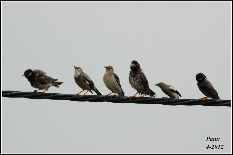 White-cheeked Starling(M & F)灰椋鳥 , Red-billed Starling 絲光椋鳥 & White-shouldered Starling 灰背椋鳥