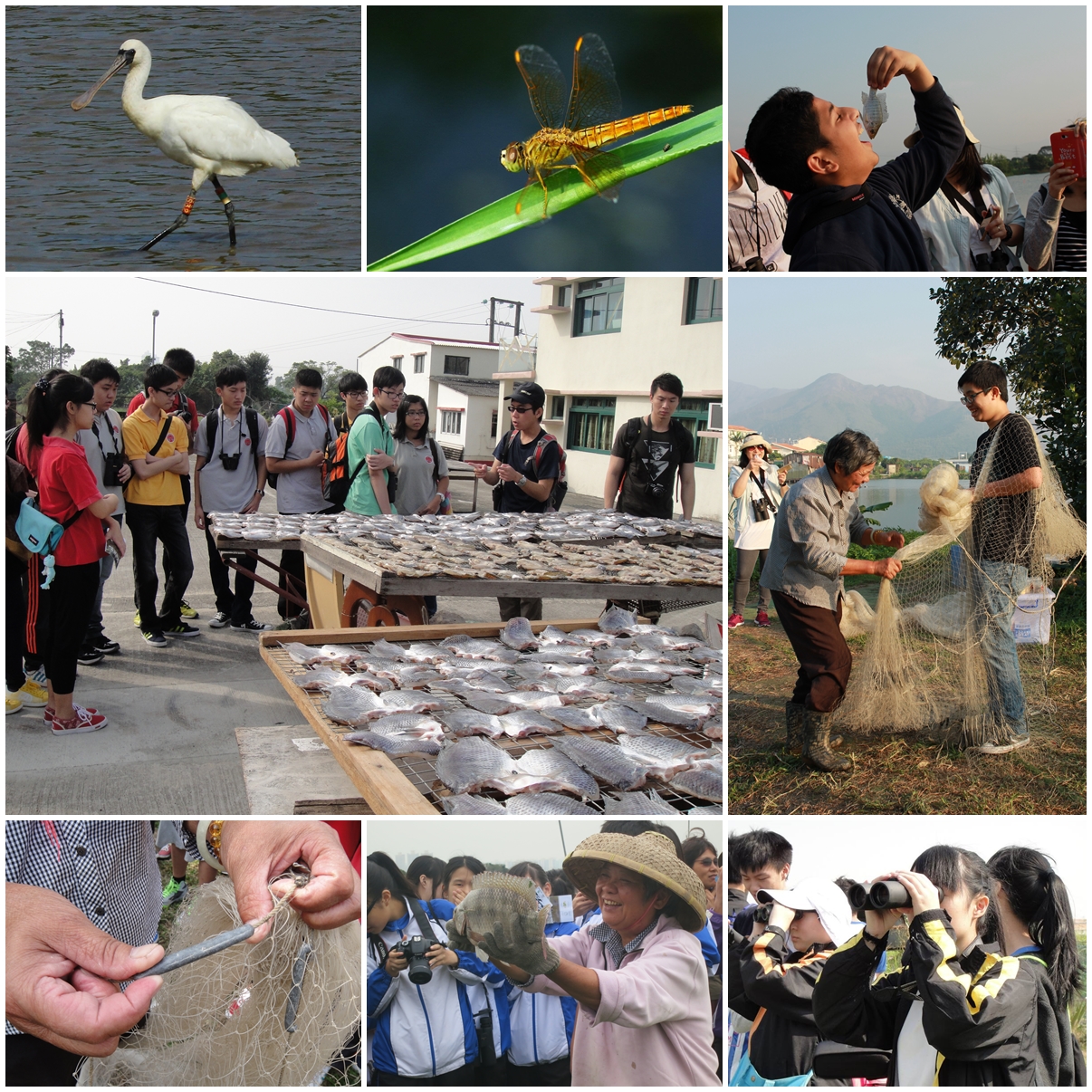 活動簡介:大生圍位於「米埔內后海灣拉姆薩爾濕地」範圍內,鄰近米埔自然保護區。現時,區內有三十多個大型漁塘,為港人生產烏頭、脆肉鯇、大頭魚等新鮮淡水魚。由專業導賞員帶領下,於大生圍觀賞形態優美的水鳥,包括各種鷺鳥、翠鳥,更有機會目睹國際瀕危的黑臉琵鷺和近危的白頸鴉。 此外,大生圍漁民會親自介紹漁塘操作和分享漁民生活點滴,參加者也有機會體驗「漁翁撒網」和餵飼塘魚。