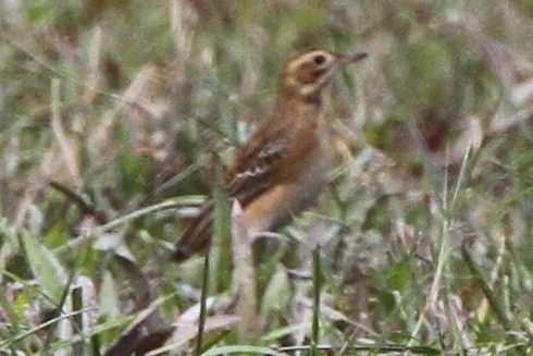 Had this interesting pipit at Pui O on Saturday.  What made me notice it was the very bright reddish-brown ear coverts which I don't associate with Richard's Pipit.  Maybe it is a bright Richard's Pipit but I am wondering about Paddyfield Pipit. I guess it comes down to bill size because the length of the tail is obscured.  Any thoughts?