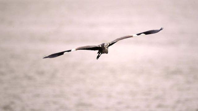 Yes, a Grey Heron. You can see the long legs, the retracted neck and six 'spotlights' on the wings. From another angle, it would look like this: http://limerick-birderblog.blogs ... nd-grey-heron.html.