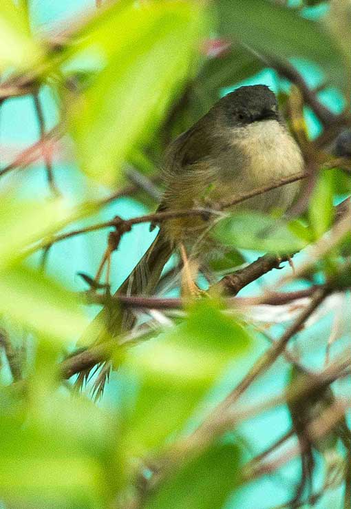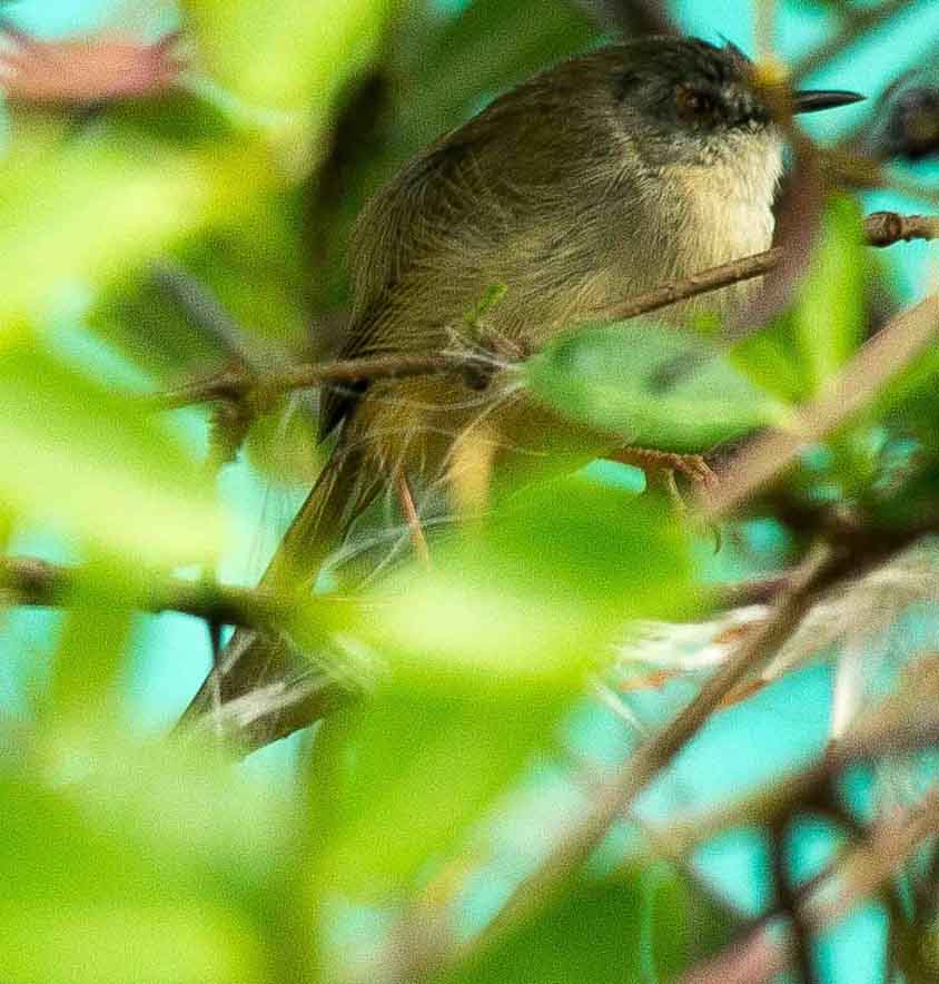 This is a Yellow-bellied Prinia - you can see the grey head and short supercilium pretty well in this photo.