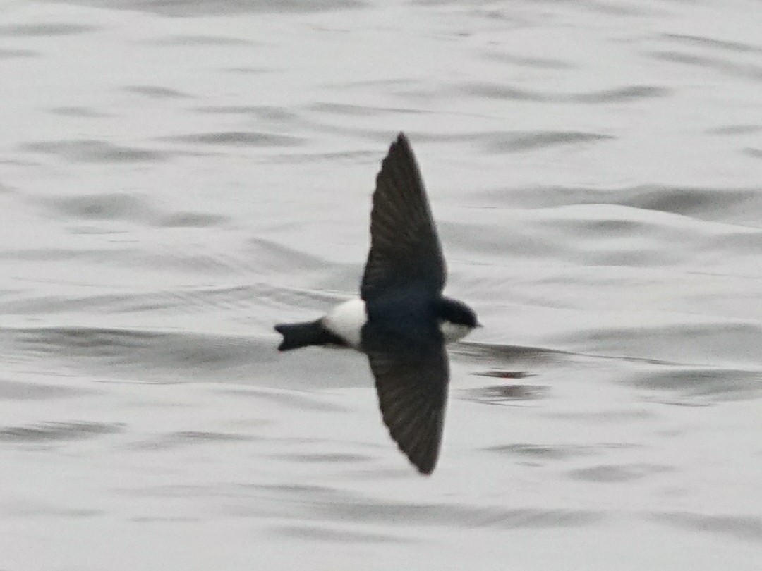 Common House Martin. Rather dingy underparts, no white on uppertail coverts, black chin.