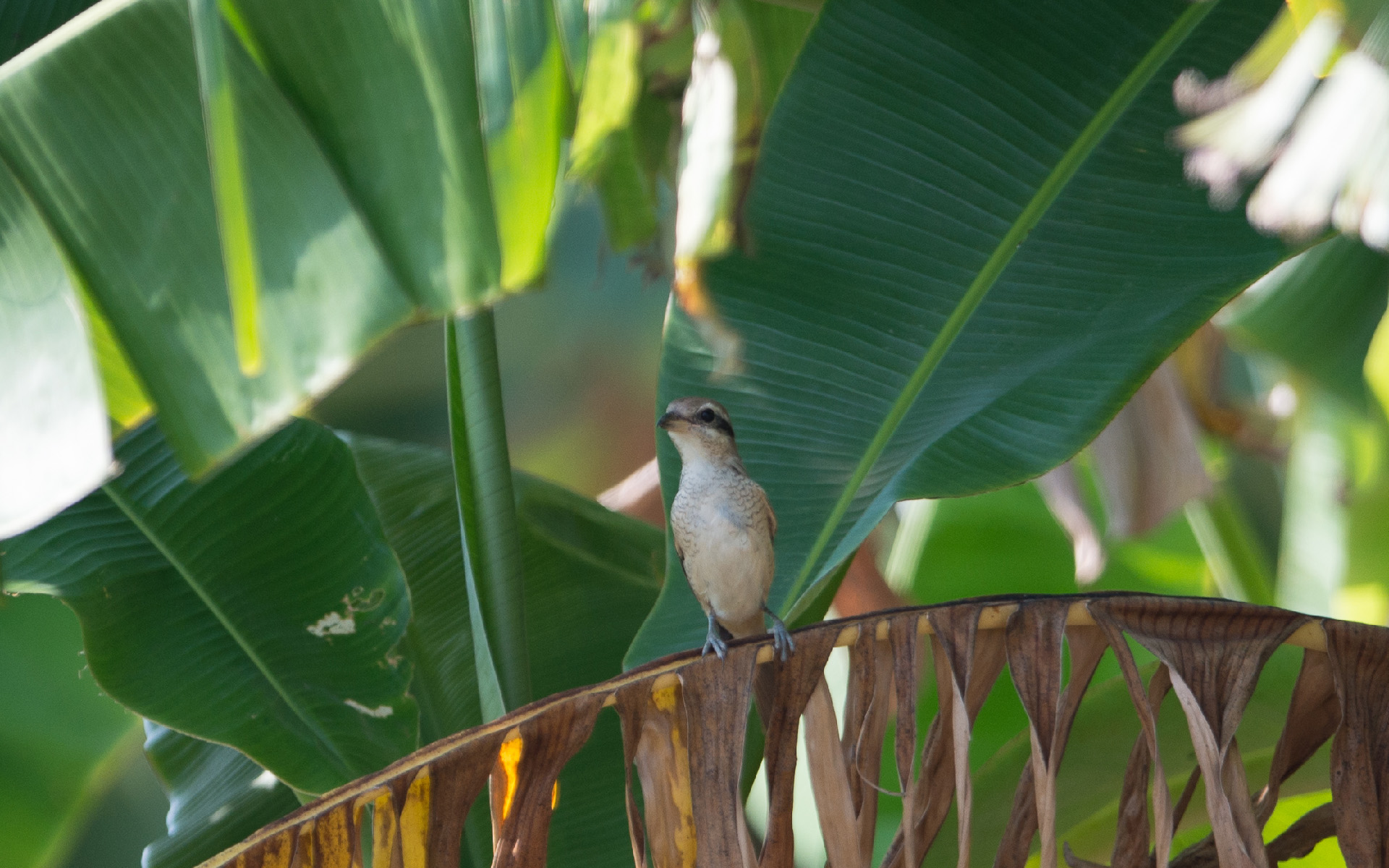 Sorry to insert my question here, but, perhaps, it s good to compare with your picture. I took this one on october 27, Long Valley, close to rice field on a banana tree.I don't know if it is an immature Brown Shrike or Tiger Shrike ?