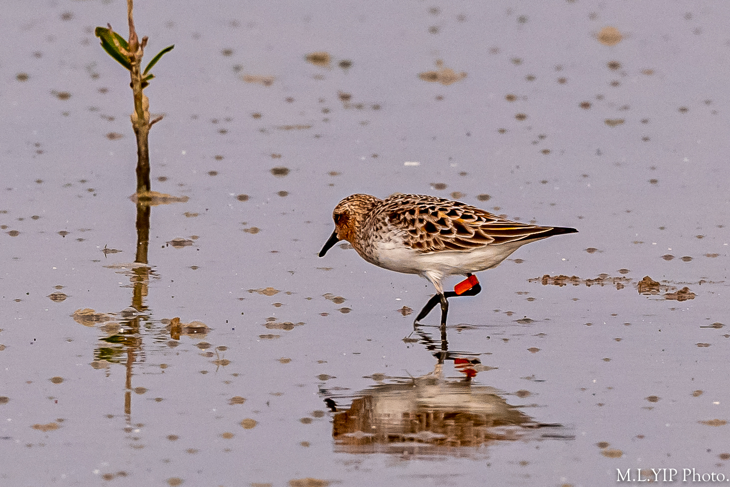 橙色旗是澳洲維多利亞省環誌的, 澳洲的紅頸濱鷸腳旗一般都是沒字的,因為覺得能近距離觀察的機會不大。