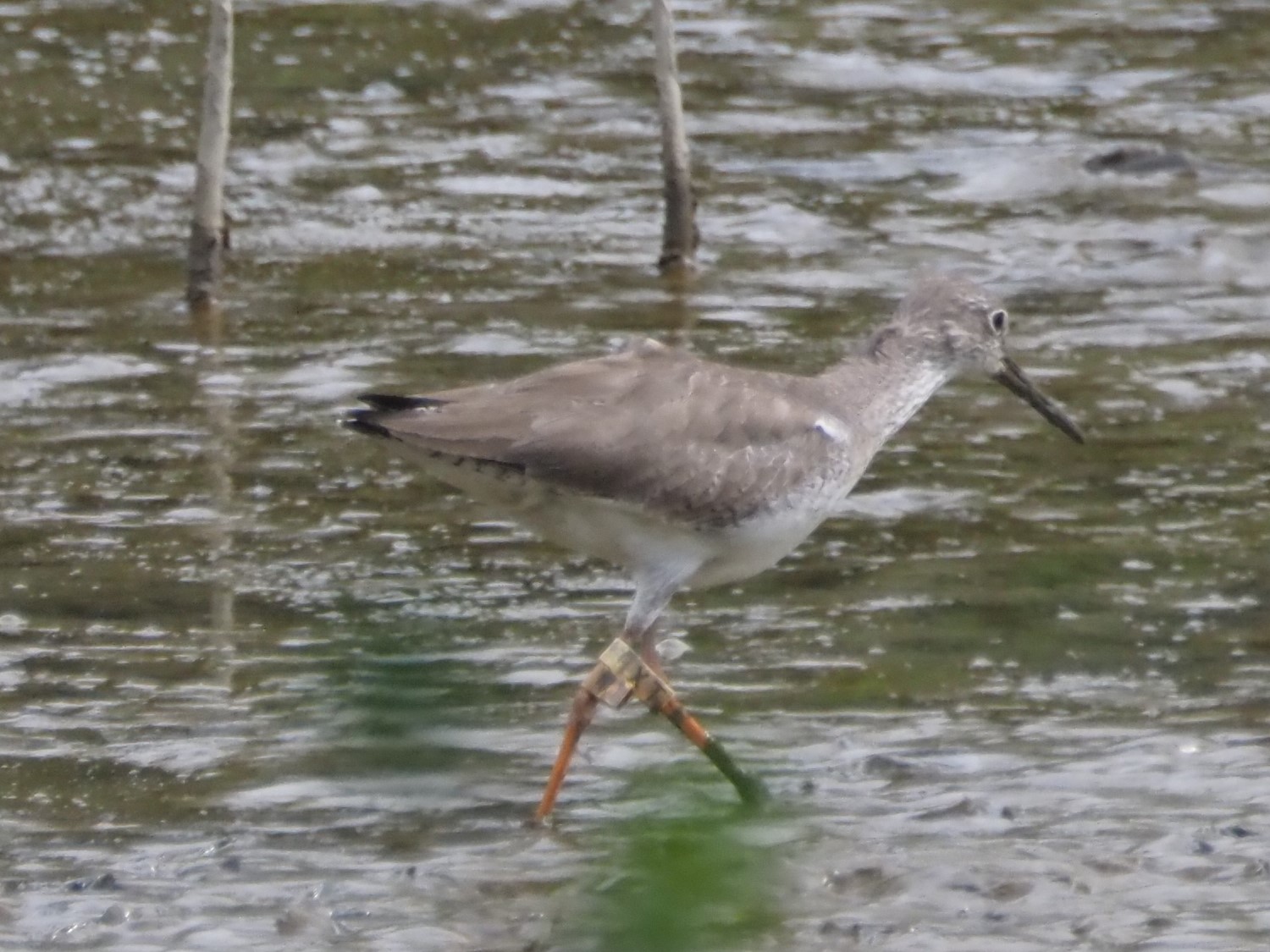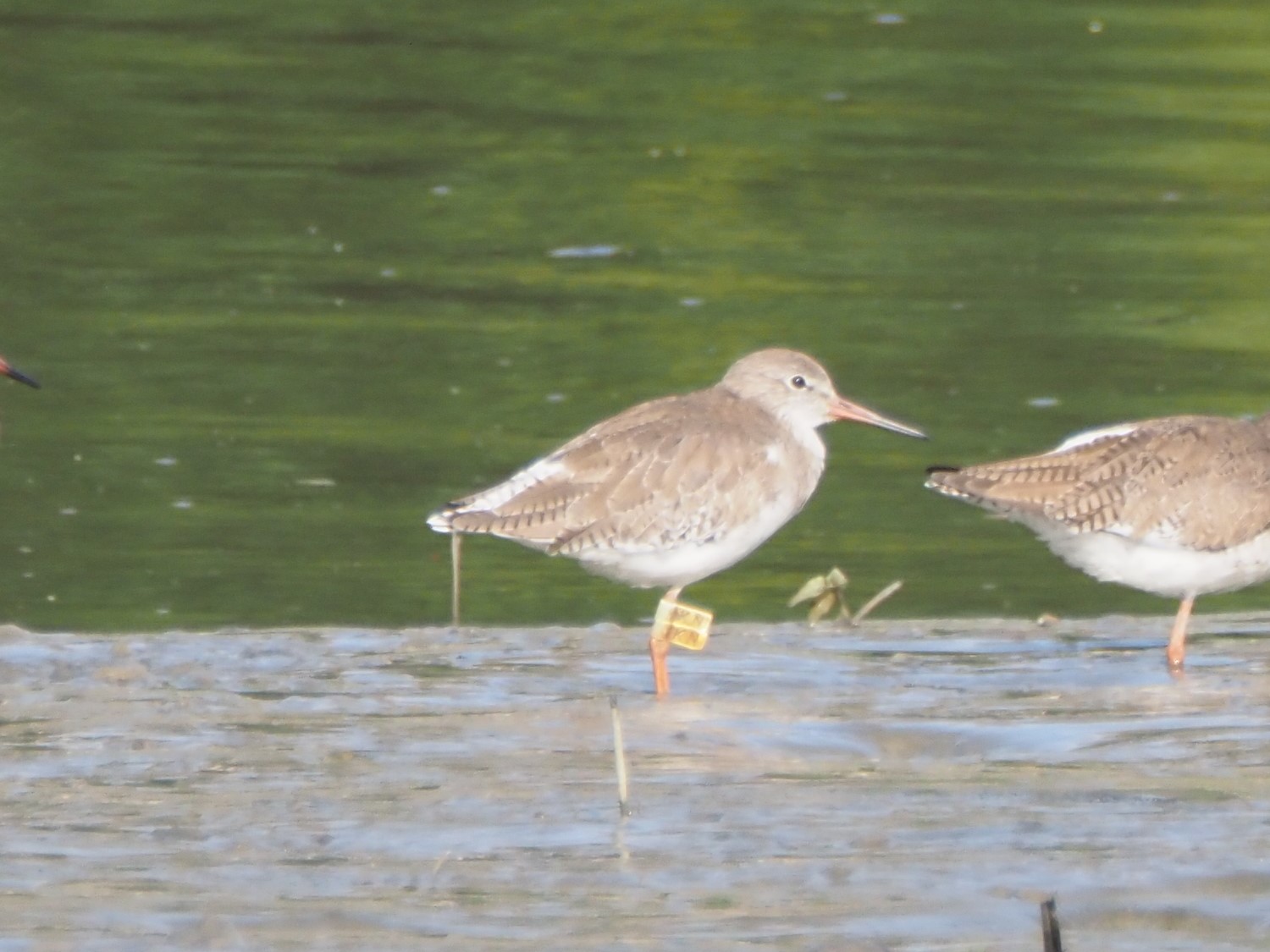 Marsh Sandpiper V4 - ringed on 11-Sep-2018; 20 sightings from Mai Po, Nam Sang Wai and Shenzhen; most recent record on 19-Dec-24 in Shenzhen Futian Nature Reserve.