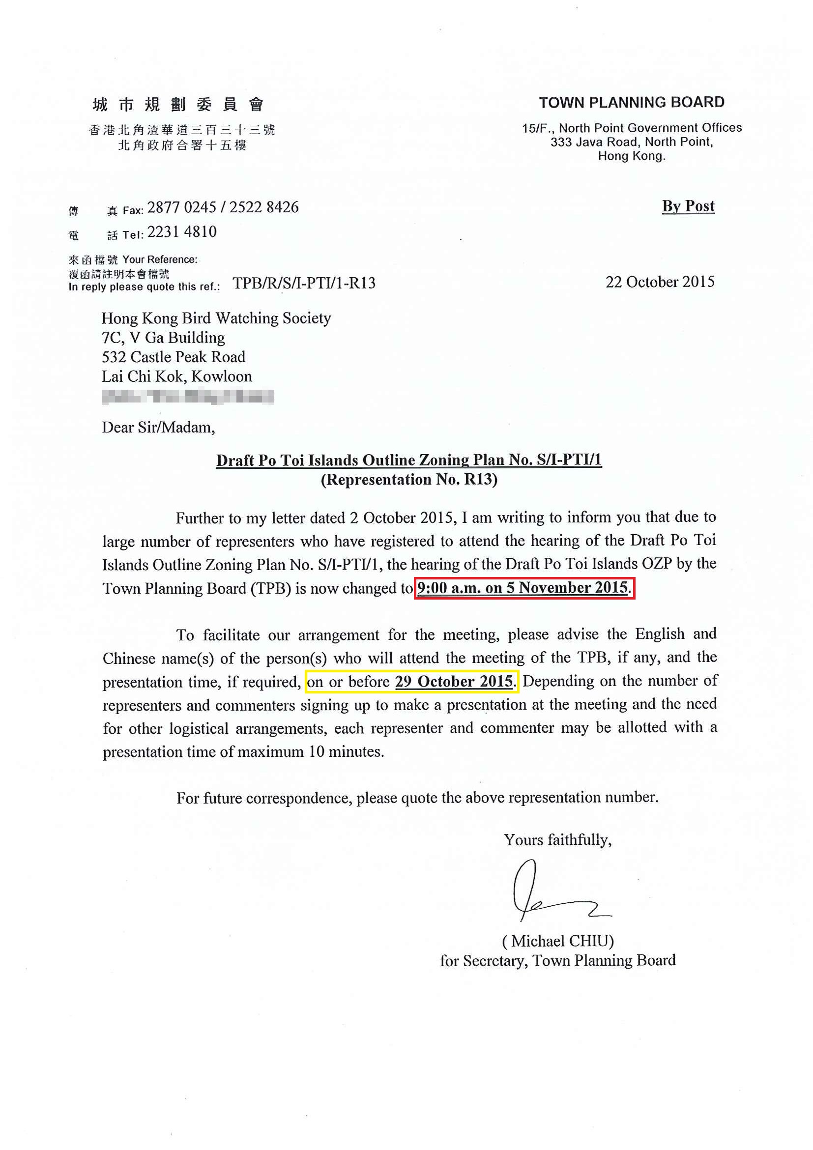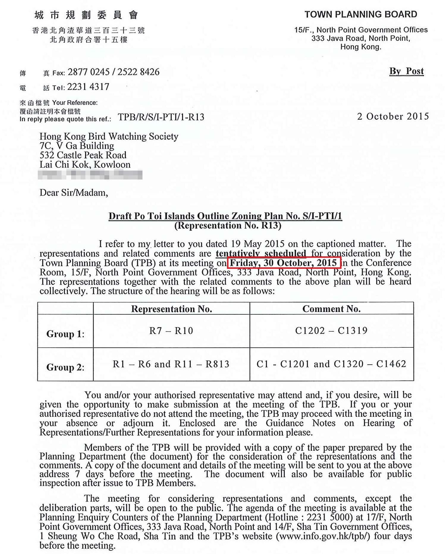 Have you received the letter/email from the Town Planning Board? The meeting for the draft Po Toi Islands Outline Zoning Plan is tentatively scheduled on 30 October 2015 (Fri). Please try your best to attend the meeting and raise your concerns to the Town Planning Board members. Even if you cannot make it, please do AUTHORISE your friend or an organization to make the presentation at the meeting. Your support is very important! Please reply to the Town Planning Board on or before this Friday 16 October 2015.