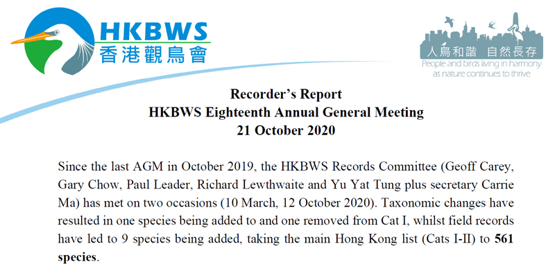 Recorder's Report 2020 HKBWS AGM