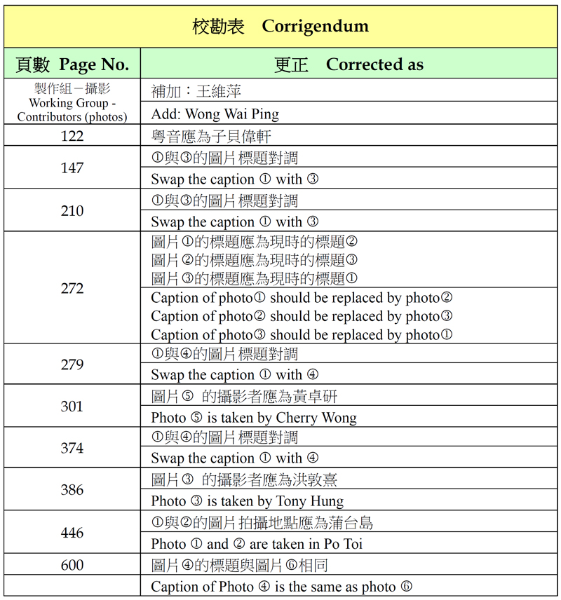 香港鳥類圖鑑(第一版)校勘表 Corrigendum Photoguide to the Birds of HK