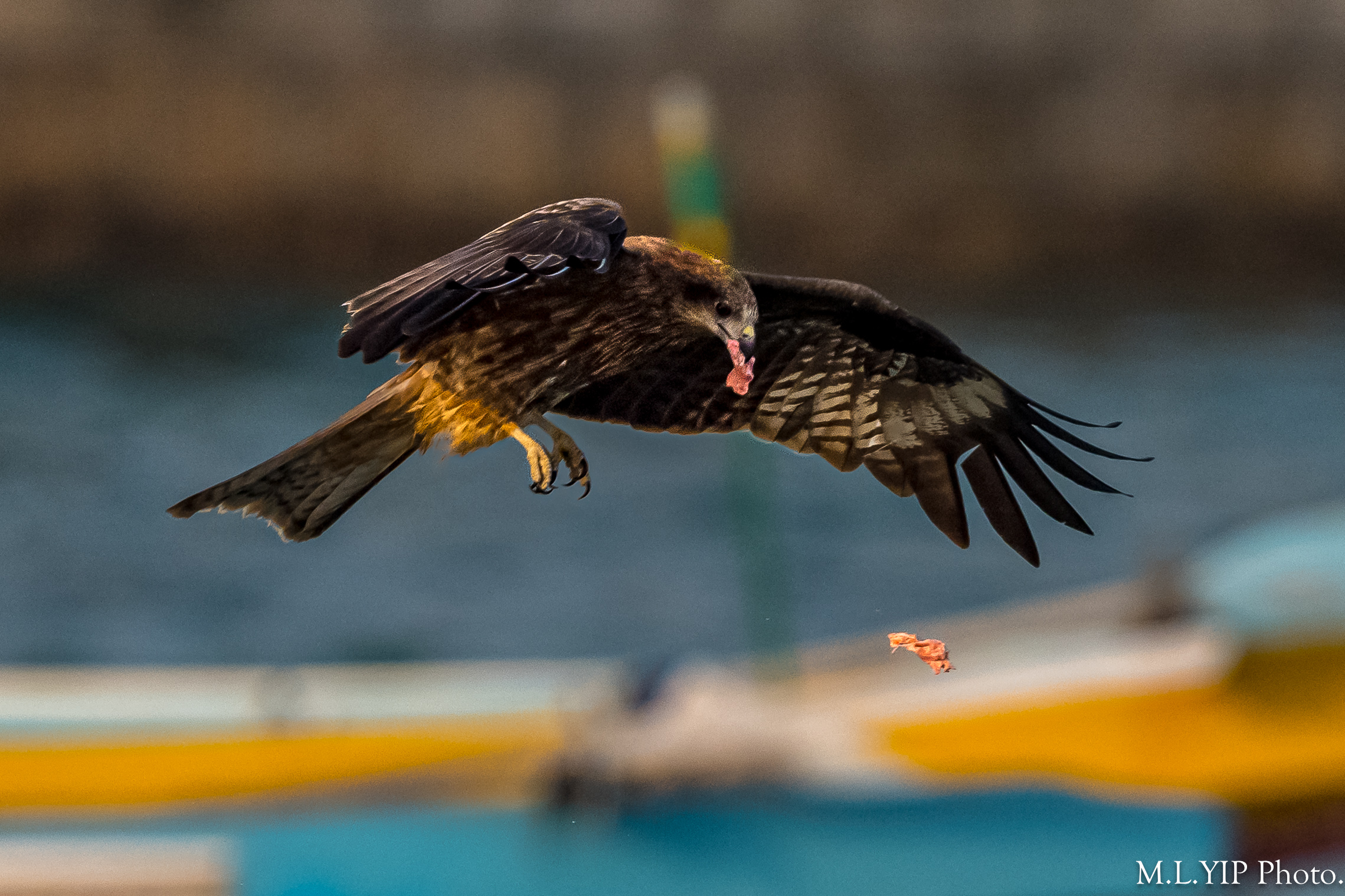 看到這些黑鳶邊飛邊吃,可能它們真的很餓了.