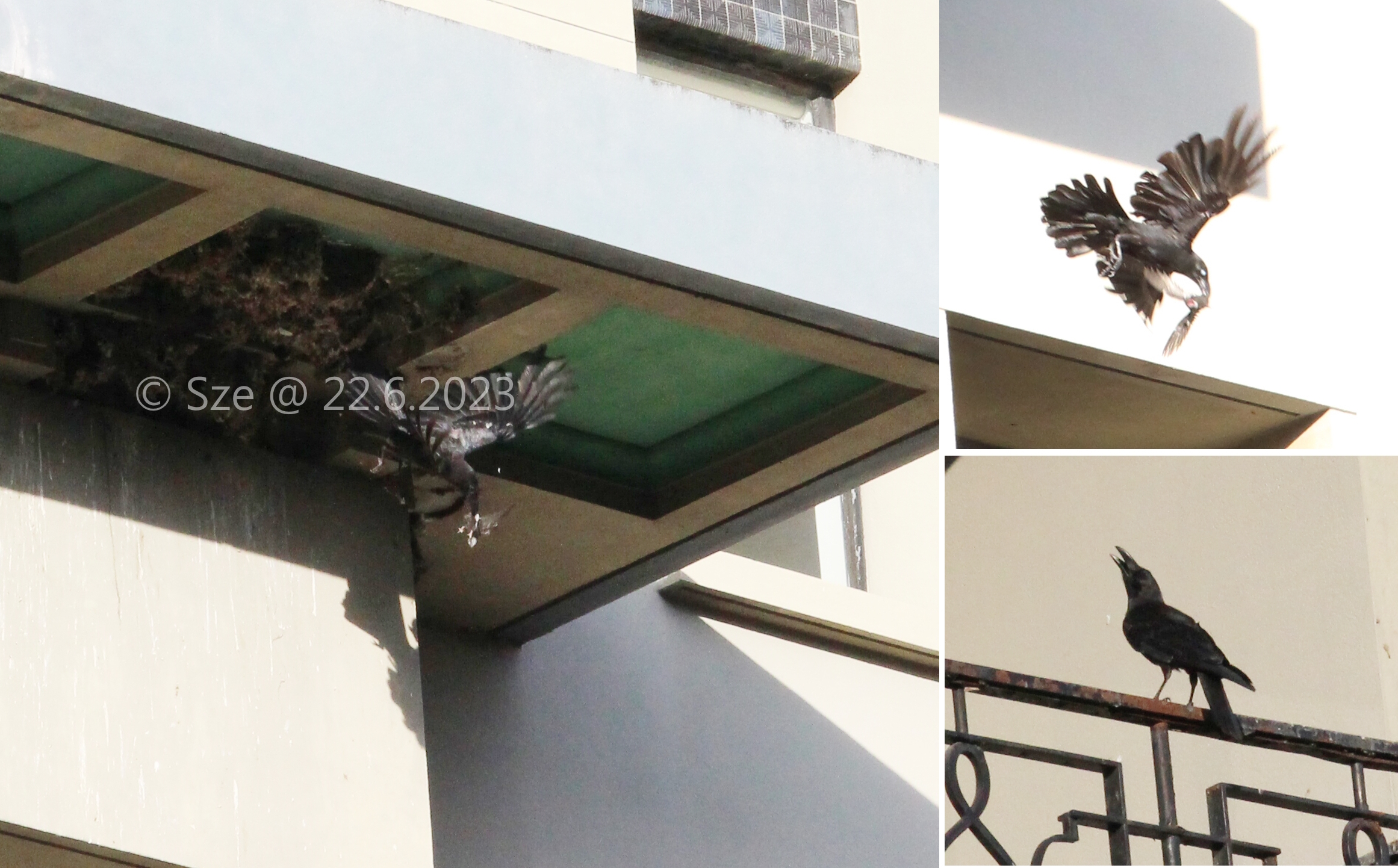 大嘴烏鴉捕食鳥巢內的小白腰雨燕(記錄照)