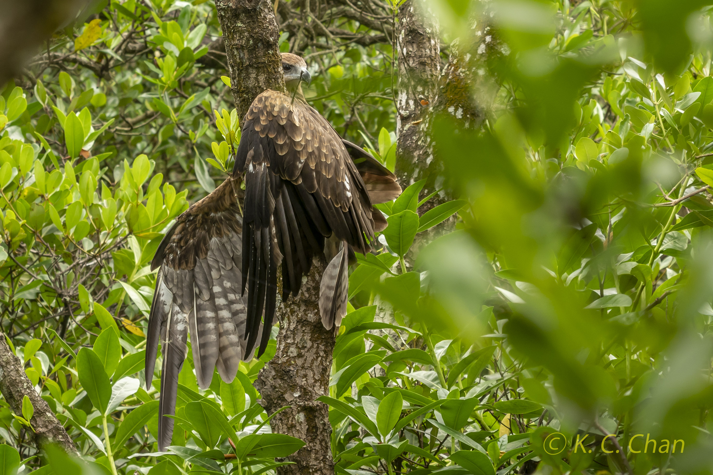 The Black Kite was 'hanging' on the bushes. Wonder if the bird was OK or not.