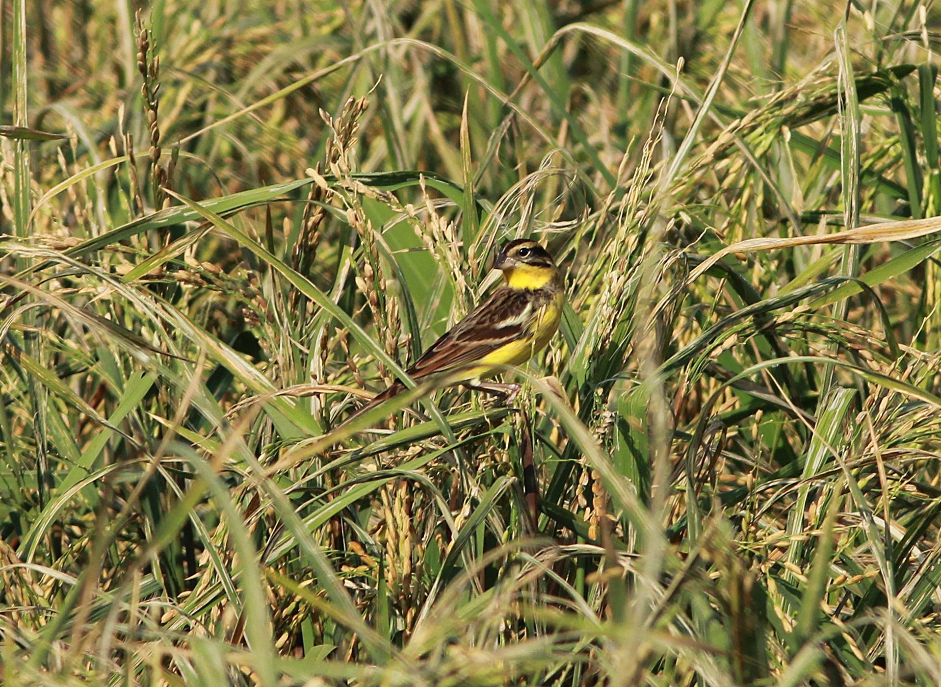 昨天在塱原見到兩隻黃胸鵐在米田!
