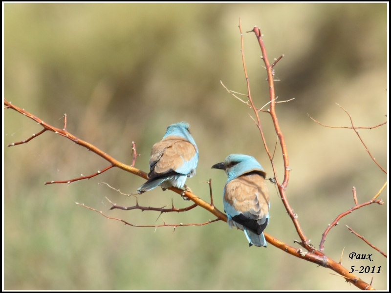 A sweet couple of European Rollers 藍胸佛法僧