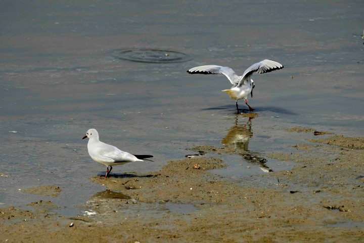 Thousands of black-headed gulls made a stop-over at Nam San Wai on February 5th.  The Kam Tin river provides the necessary resource for them to prepare for the migration.  Close by the shore these two gulls paid full attention to the movement in the water.   They took every opportunity to build up their reserve for the long journey ahead.