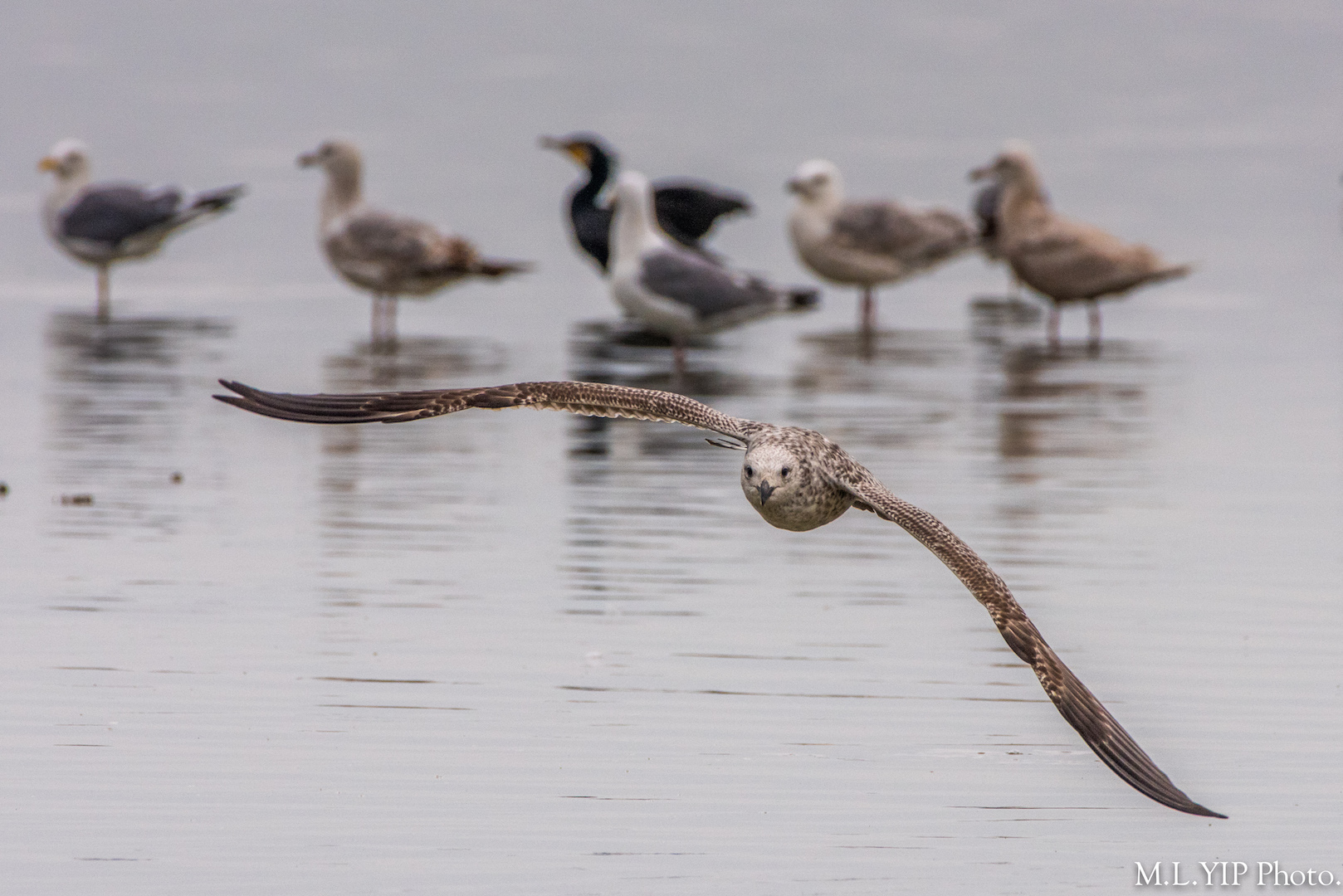 這隻灰背鷗可能與其它的鷗兒談得不投契, 拍翼揚長而去.