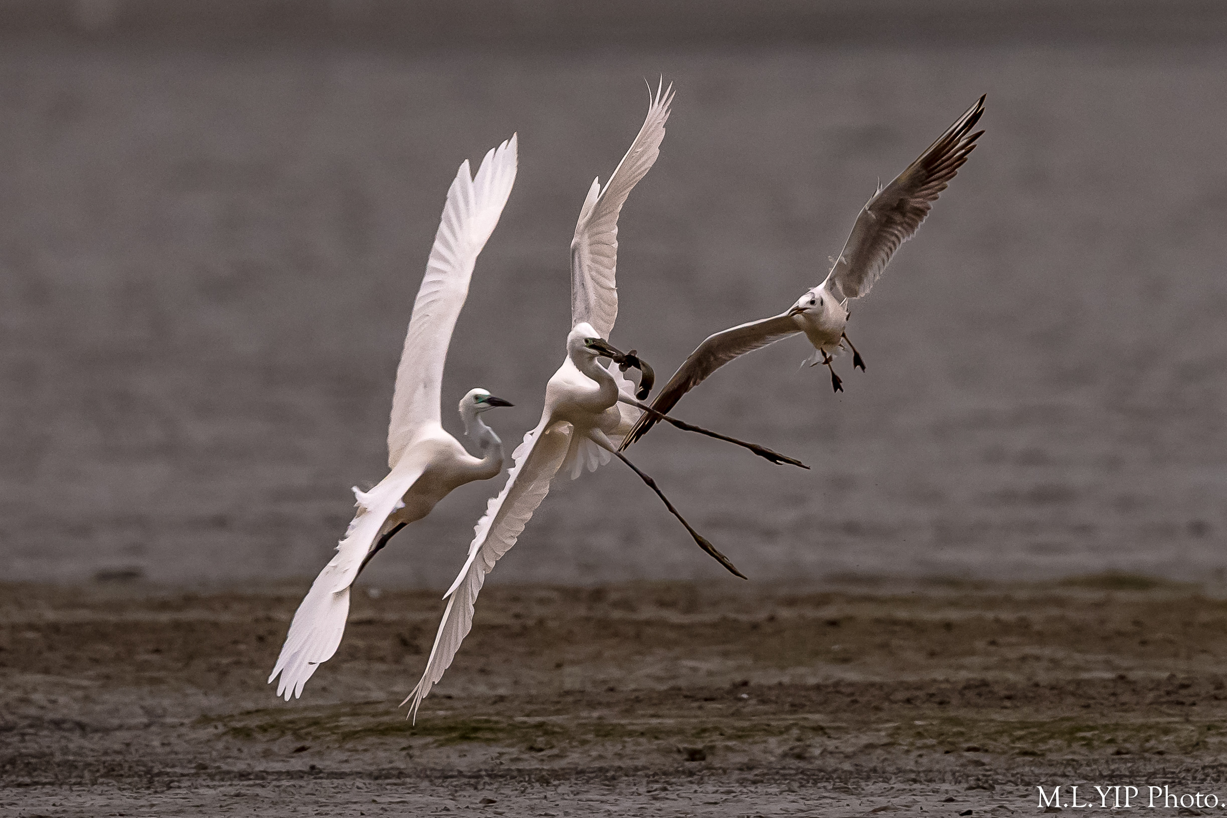今番輪到紅嘴鷗互搶了.