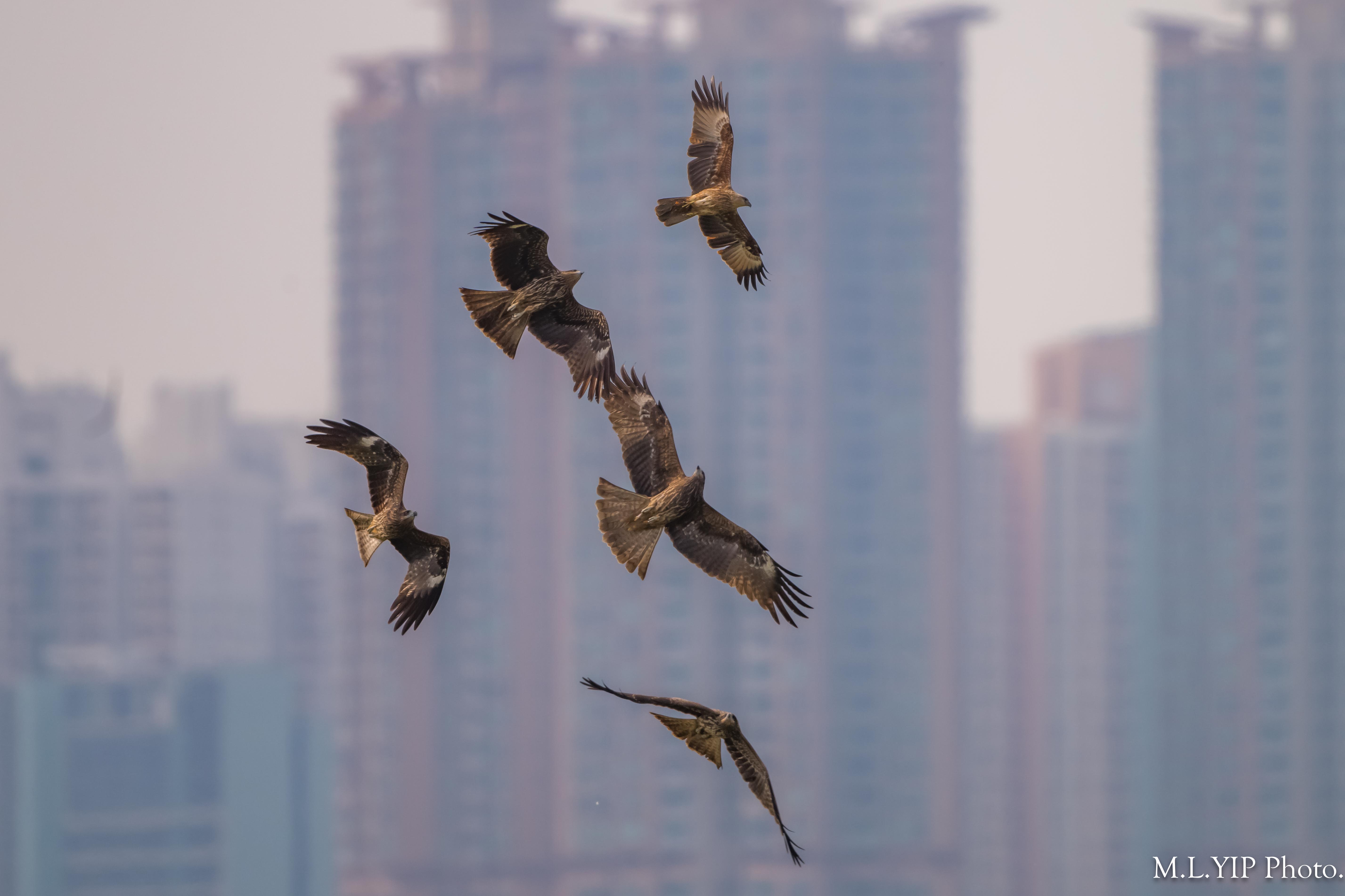 最初祇見一兩隻麻鷹,然後栗鳶似乎在地上執咗啲食物,就四鷹齊撲.