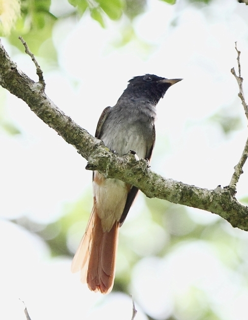 The second bird is a Japanese Paradise Flycatcher. Note the darker brown tones to the mantle and tail, not so rich reddish as in Asian. So doubly lucky for so early in the autumn!!