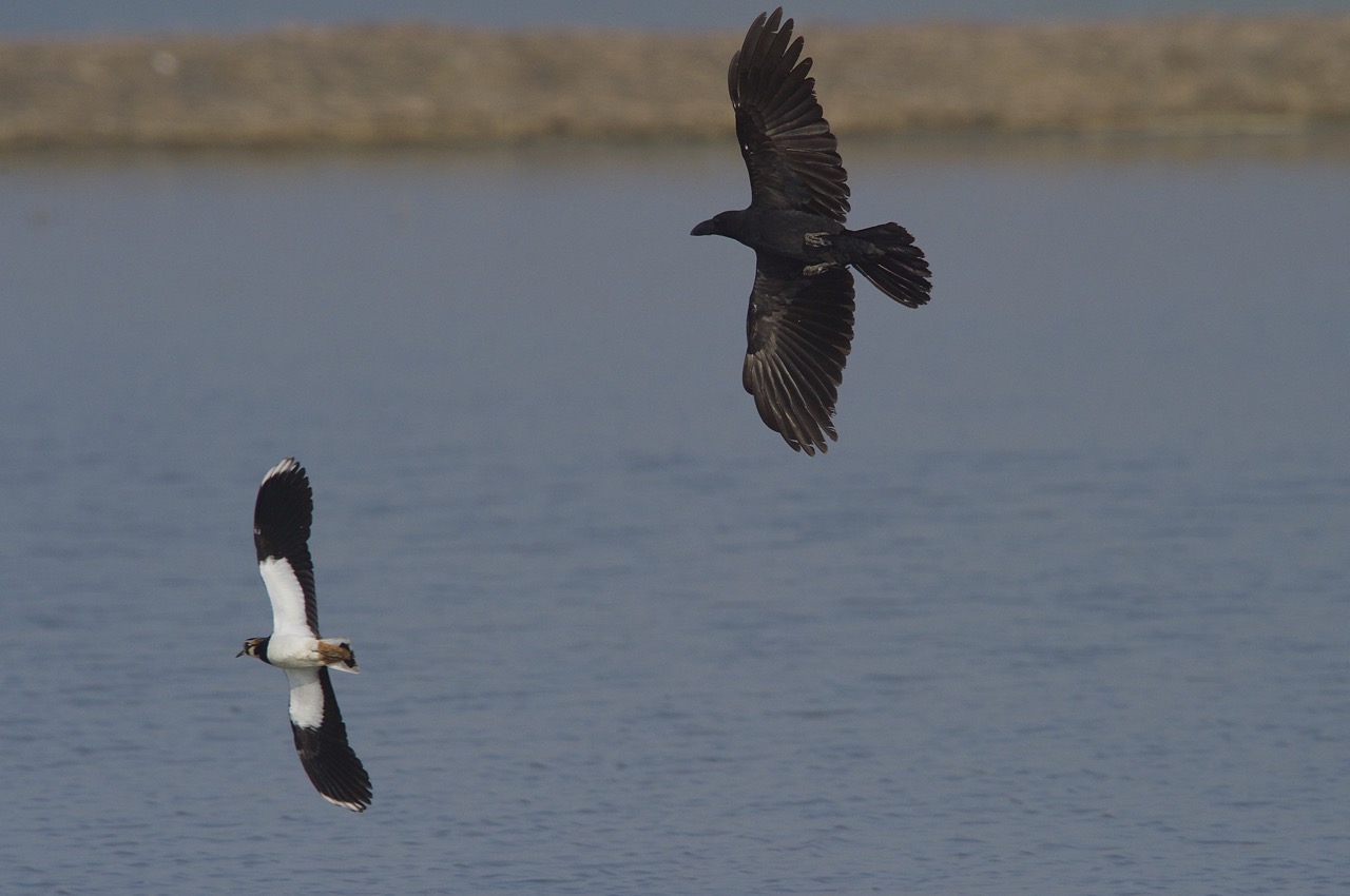 Large -billed Crow chase Northern Lapwing 大嘴鸦追鳳頭麥雞