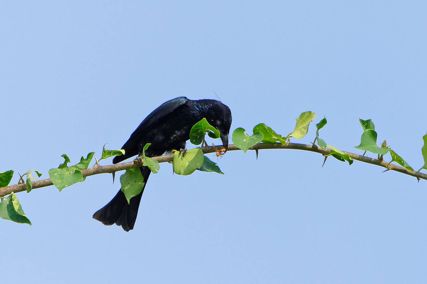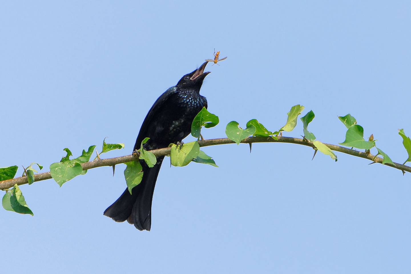 Hair-crested Drongo and the wasp (髮冠捲尾與黃蜂)