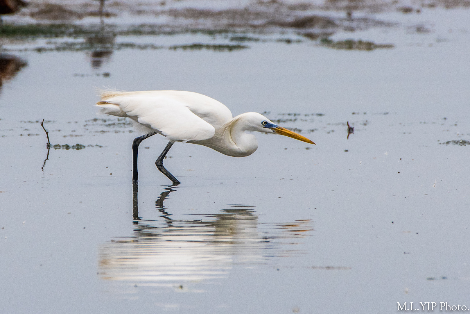 四月二十七和二十八日上午,在米埔泥灘上看到最少有三隻黃嘴白鷺,偶爾更靠近觀鳥屋.