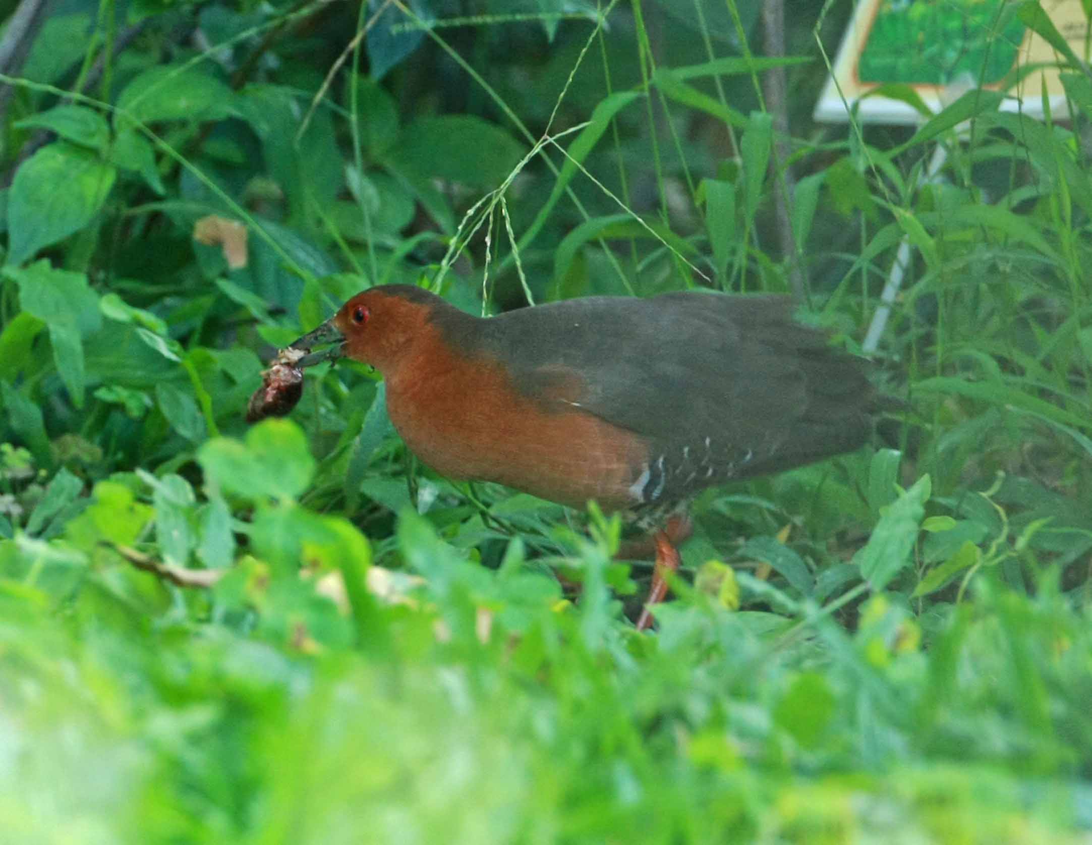I finally saw the bird after the third visit. I am quite impressed with thanks to receive warm welcome from the LFS Education Centre's, staff. I noticed that the bird was too shame and sensitive to disturbance, the time of its appearance was rare, even it appeared, it always stroll at the edge of the bush and not so easy to see or photo, may be some of the viewers were too close to the grass area, the bird was probably under pressure. In order that the bird could appear in the open area, I hope that viewers should keep away from the grass area as far as possible, so the we can enjoy to see the bird more clearly in the open area and photographers could take good photos accordingly. Expect to see more beautiful photos in BBS soon.