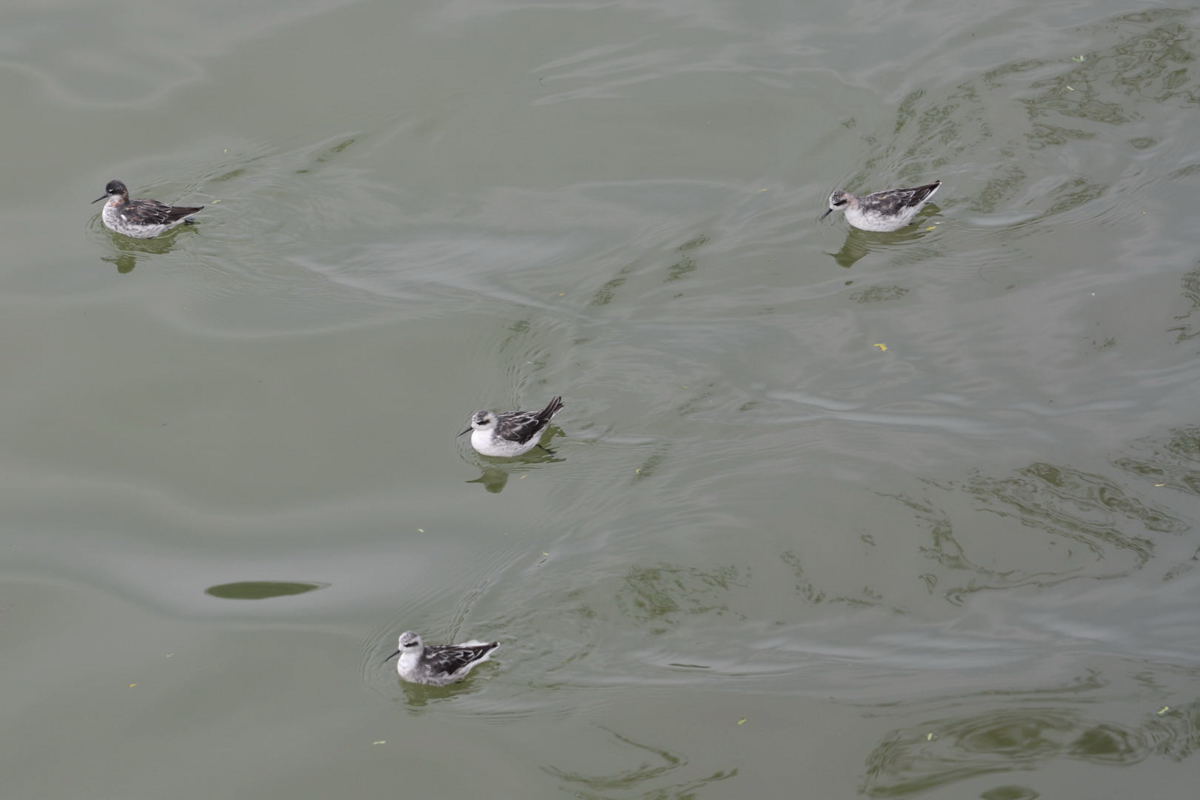 A flock of about 30 red-necked phalaropes was seen feeding in Shing Mun River this morning(8am). And later(9:15am), another 50 phalaropes flew by. As they were going in the same directon, from Tolo harbour to Tai Wai, i assume they were not the same flock.