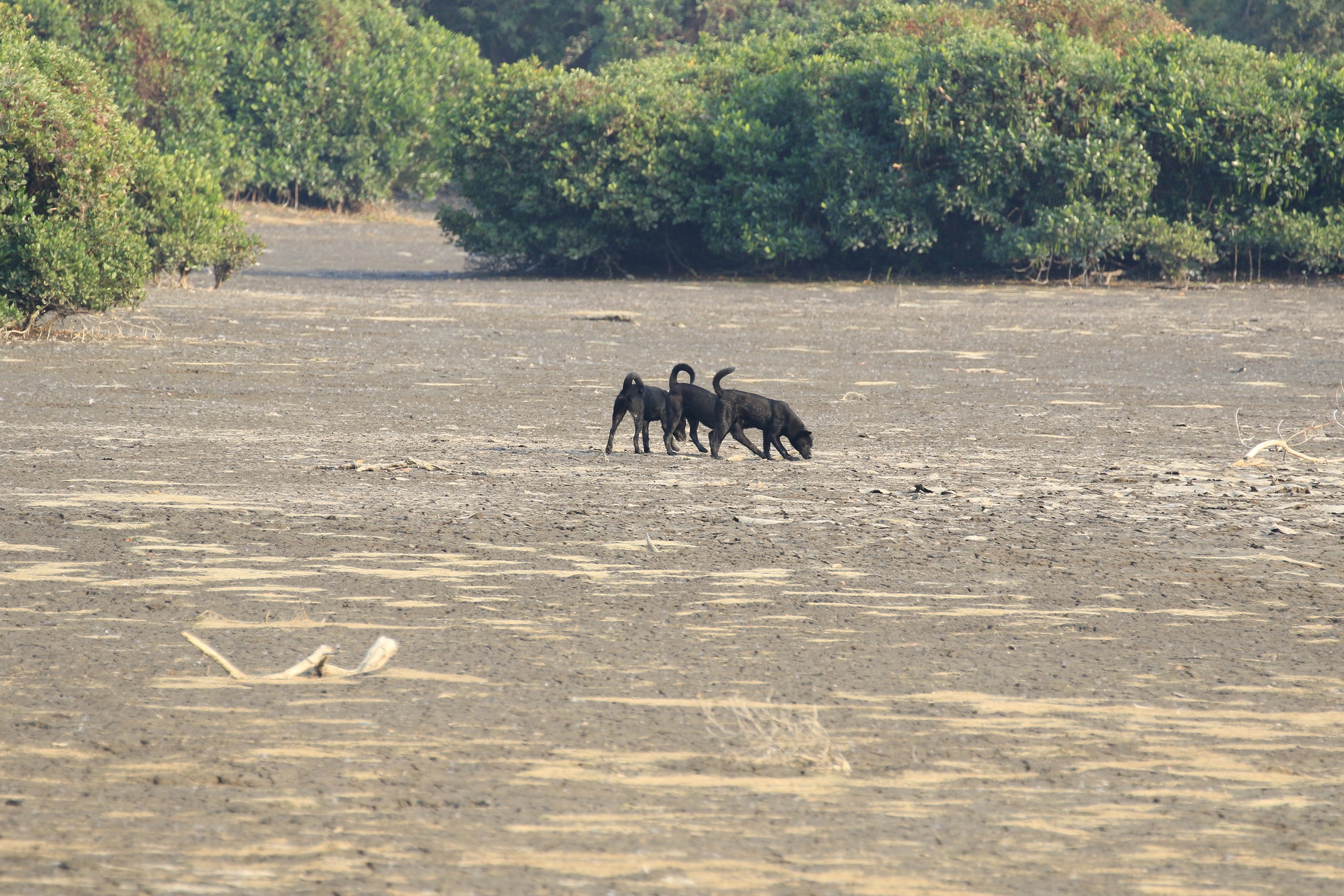 Thank you for reporting. As observed, we found that the dogs are active between the fish ponds and Gei Wais. We will patrol more frequently and communicate with the fish pond owner for further follow up.