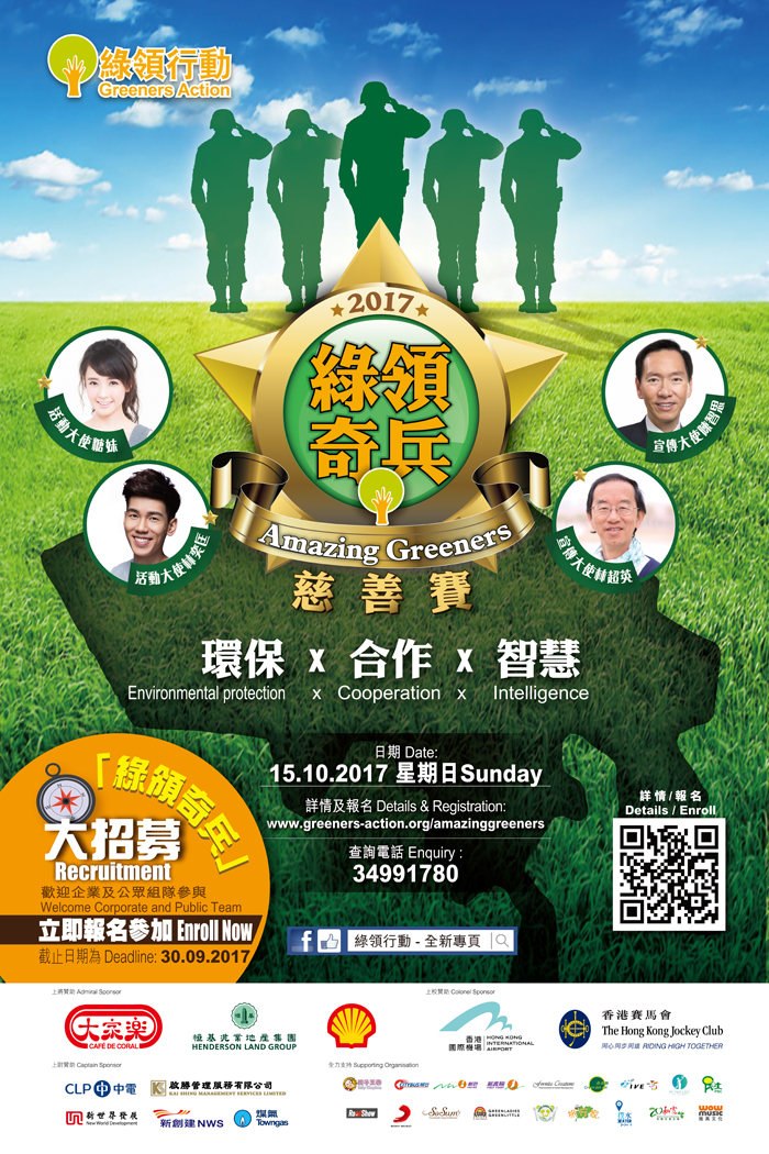 今次慈善賽將會係港島區唔同既環保熱點完成神秘任務,既挑戰你環保知識,亦考驗團隊合作精神,最重要係可以支持綠領行動既社區減廢工作。咁有意義既活動,點少得你既參與呢? 9月30 日就截止報名喇,快D同朋友一齊參賽啦!