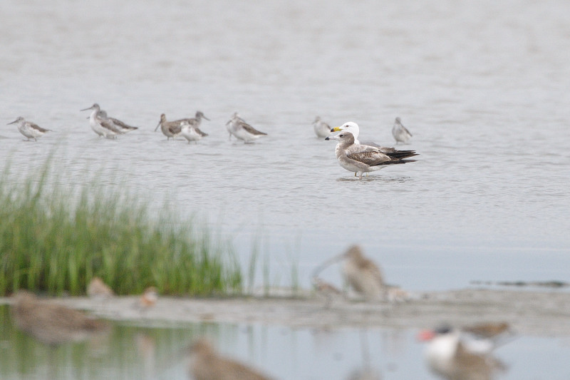 Nice to see the Long-billed Dowitcher in the background of the now very smart Black-tailed Gulls!