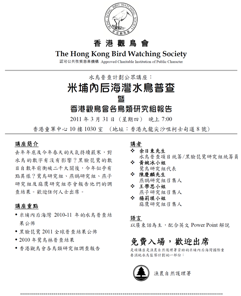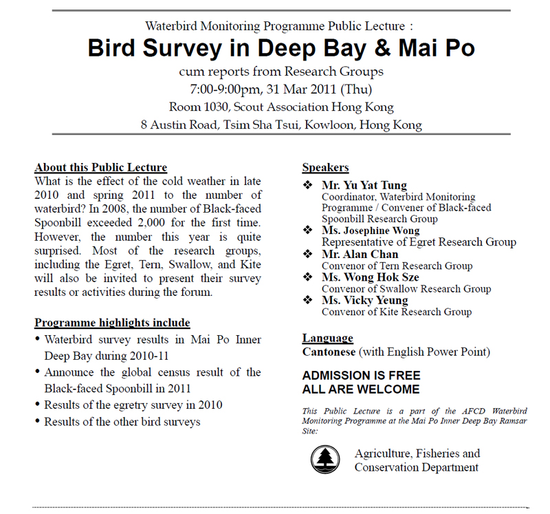 » 水鳥普查計劃公眾講座 Waterbird Monitoring Programme Public Lecture