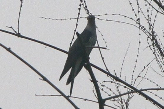 Saw this bird today at Yin Kong (near Long Valley). Initially thought it looked a different than an Indian Cuckoo--greyer than I expect for Indian Cuckoo and not brown enough on the back. Now because of the light and indistinct barring on the breast I am wondering if it is an Oriental Cuckoo or Common Cuckoo.