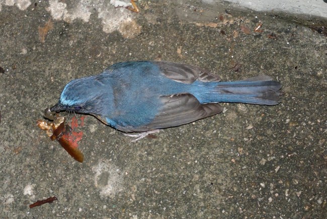 This Blue-throated Flycatcher was observe near my home Western Hong Kong Island along the path of a pedestrian stairwell after coming back from Po Toi at about 19:45. It was very exhausted and I could get extremely close and take these photos with my cell phone.