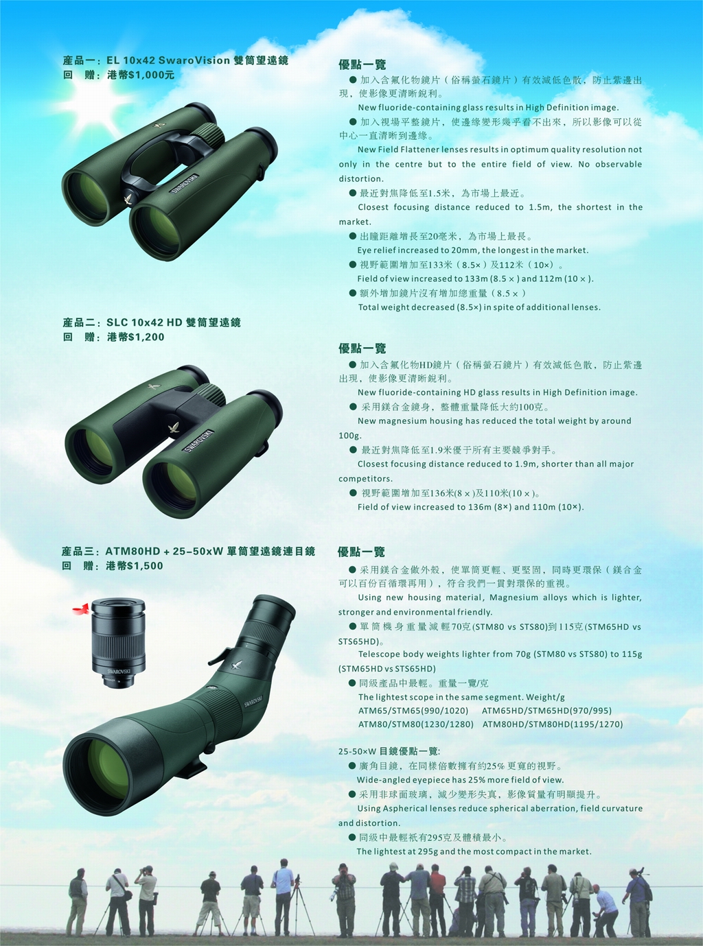 Swarovski Optik指定3款望遠鏡,將獲Swarovski回贈港幣$1,000至2,700,亦同時為本會帶來港幣$250元的捐款。