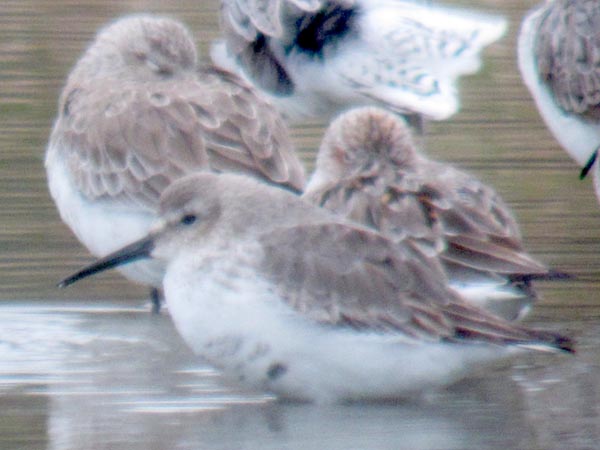 今天的重要課題是黑腹濱鷸冬羽跟彎嘴濱鷸冬羽的比較,檢查過今天的照片,似乎可以用頭頂跟背部顏色對比來分,黑腹濱鷸頭頂跟背部顏色差不多,彎嘴濱鷸頭頂明顯比背部深色,似乎頭頂可以看到一些紋,大家不妨上檢查一下自已或網上的照片。