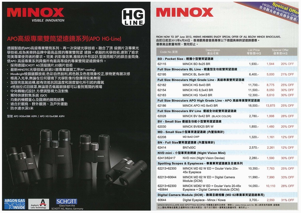 美樂時望遠鏡優惠 Special Offer of Minox Binoculars 2012/04 ~ 2012/06