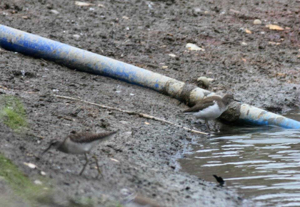 The out-of-focus bird at the front is a Wood Sandpiper for comparison.