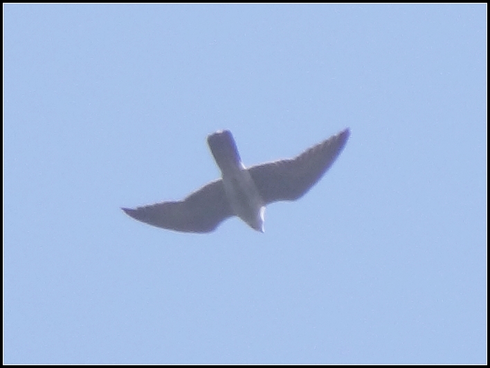 In terms of plumage, note that this looks generally pale below (on better views it should be narrowly barred) - Eurasian Hobby should normally appear much more heavily marked with a contrast between the white throat and darker body. If you look closely you can also see the 'moustache' (this is shared with other falcons, of course).