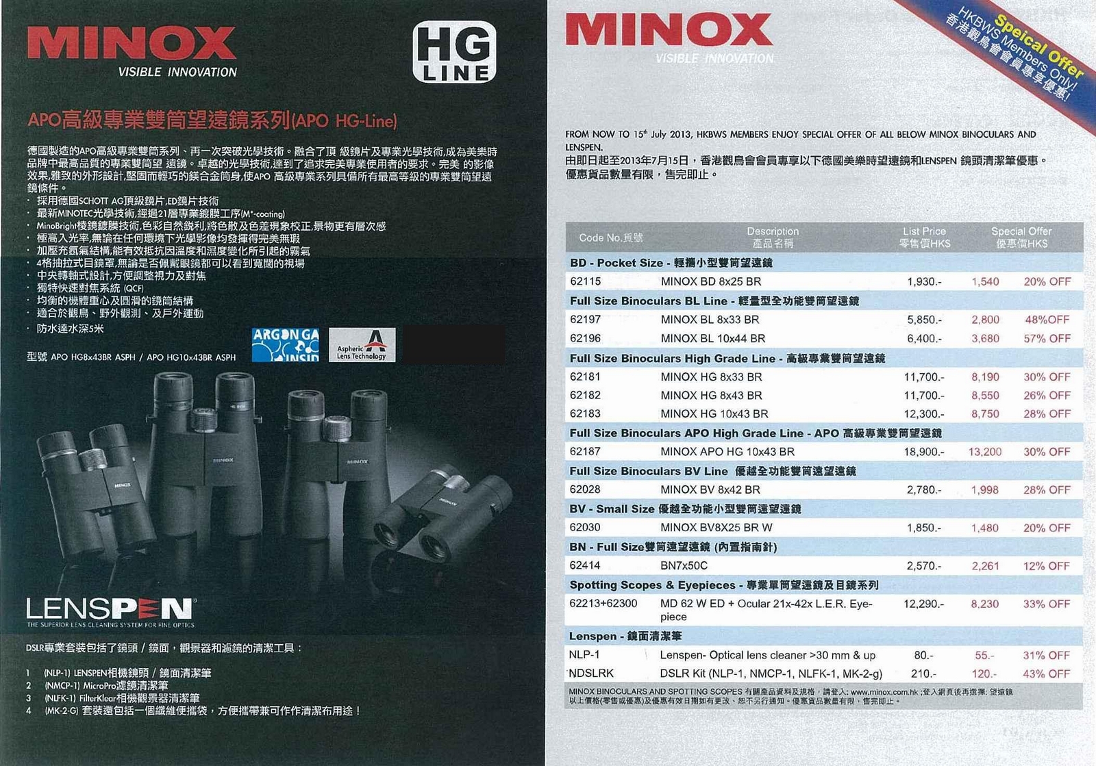 美樂時望遠鏡優惠Special Offer of Minox Binoculars 2013-04 ~ 2013-07