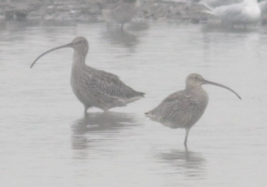 I think they fit Eurasian Curlew better. The foggy colour of the photo makes it difficult to make a clear judgement.