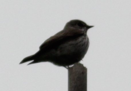 It's a Grey-streaked Flycatcher - a long distance migrant on its way back up north from wintering grounds well to the south eg Halmahera on the equator in Indonesia, where I recently saw them sharing trees with Rainbow Bee-eaters, a mainly Australian species.