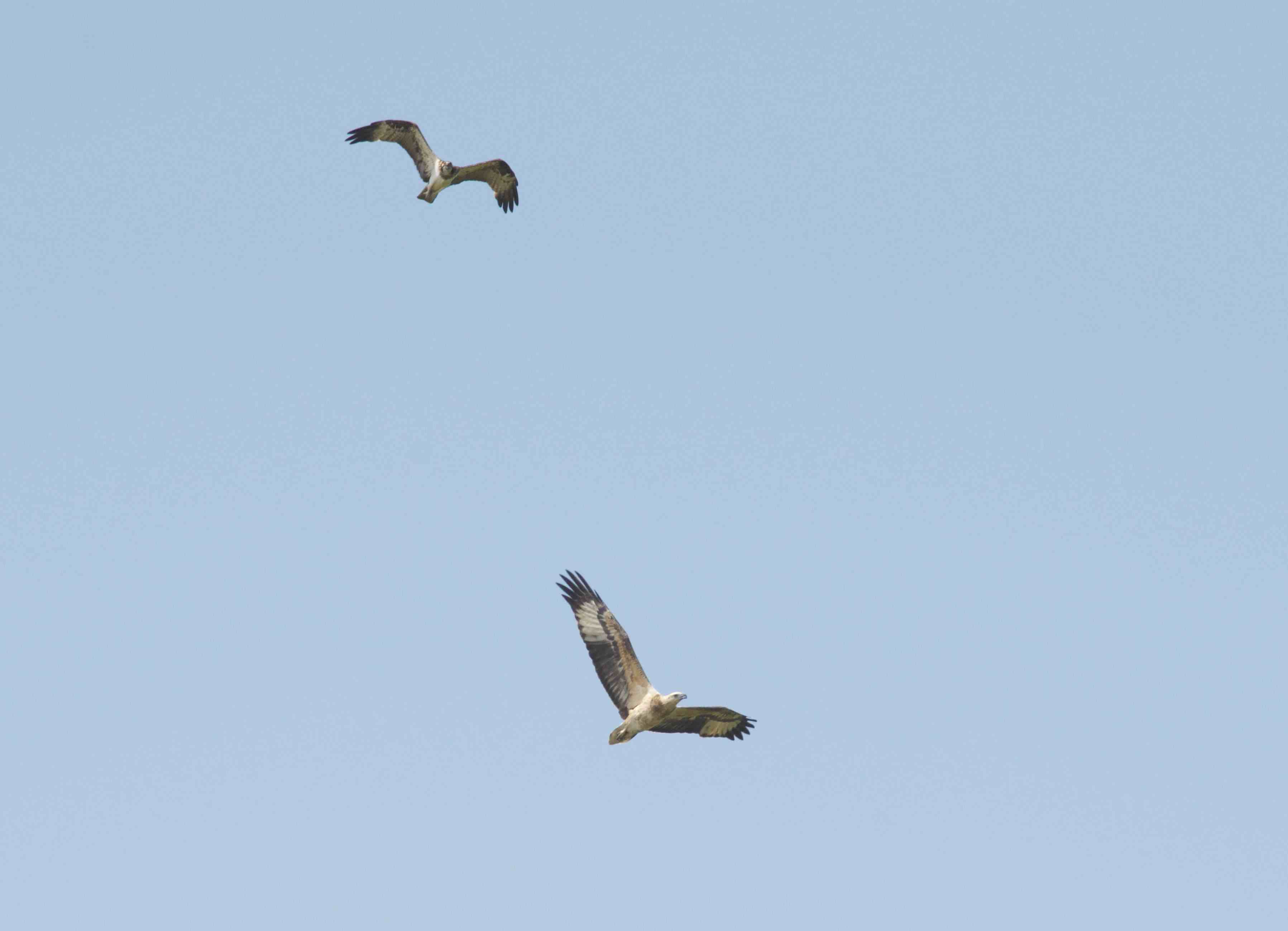 The shape of the tail of the lower bird in the 1st photo and the bird in the 2nd photo seems not to be Osprey. Its face is totally white. Does it look like White-bellied Sea Eagle (juvenile)?