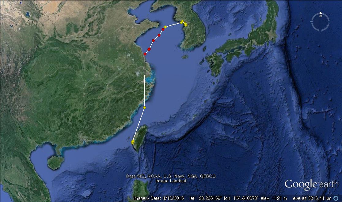 I just received the coordinate data of E44 which flew to Yancheong, China at 14th Oct.