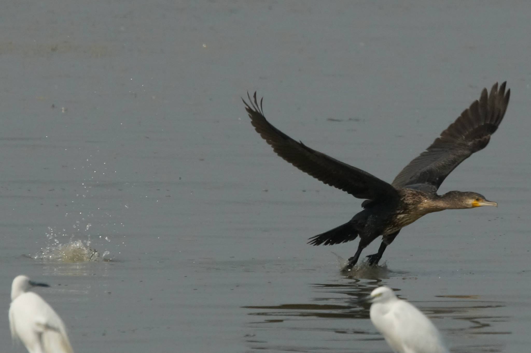 Hundreds of Great Cormorants were seen at Mai Po mudflats and Gei Wai No. 6 on 20 October 2013.