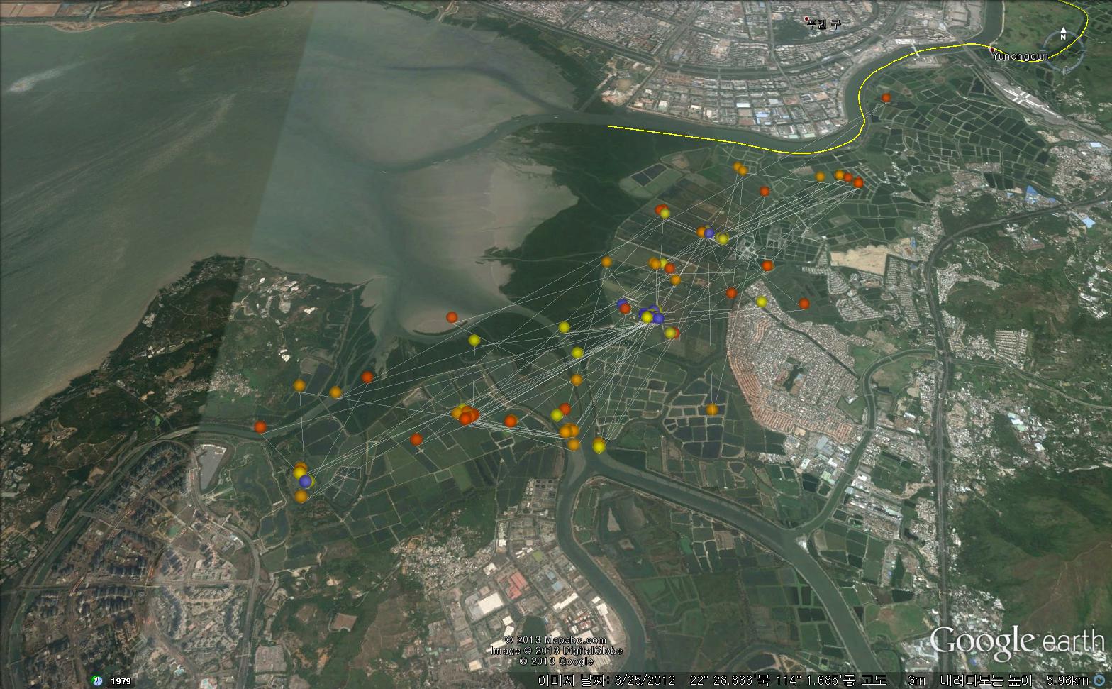 黑臉琵鷺 S21 的十二月衛星追蹤結果 (李起燮博士/ Korea Institute of Environmental Ecology )