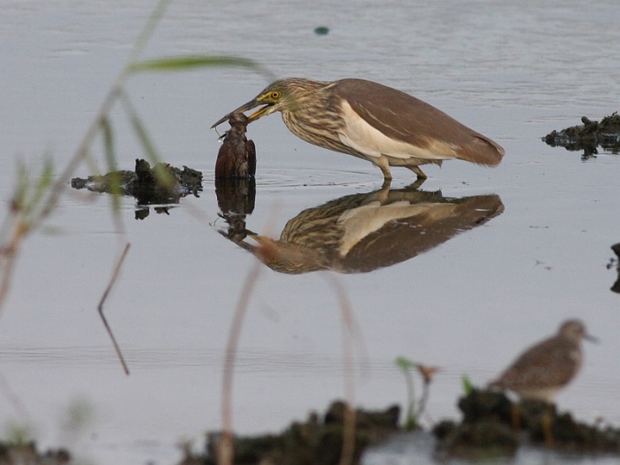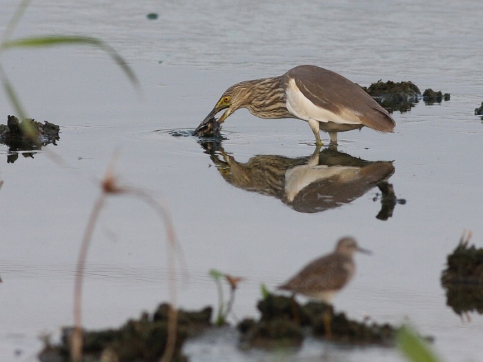 The poor Scaly-breasted Munia would never be aware that this Heron nearby was a killer. It first drowned the Munia to death, then swallowed it without hesitation!