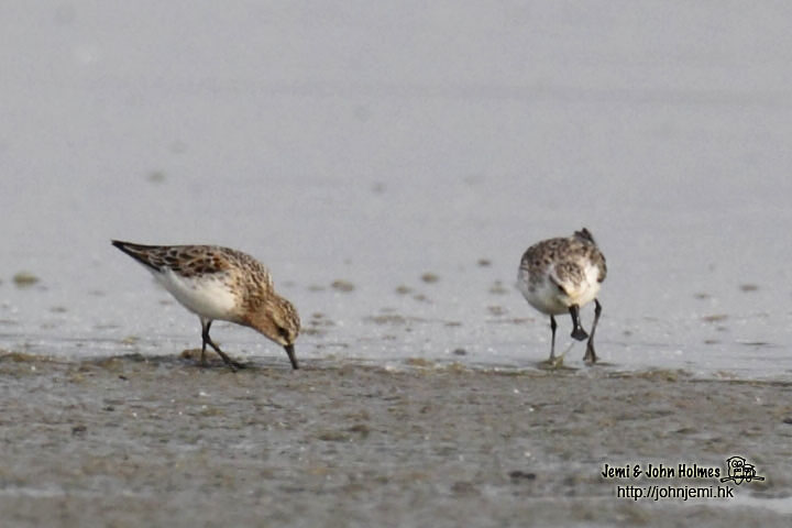 A Spoon-billed Sandpiper was seen from the Mai Po Boardwalk hides today, on both the rising and falling tides.